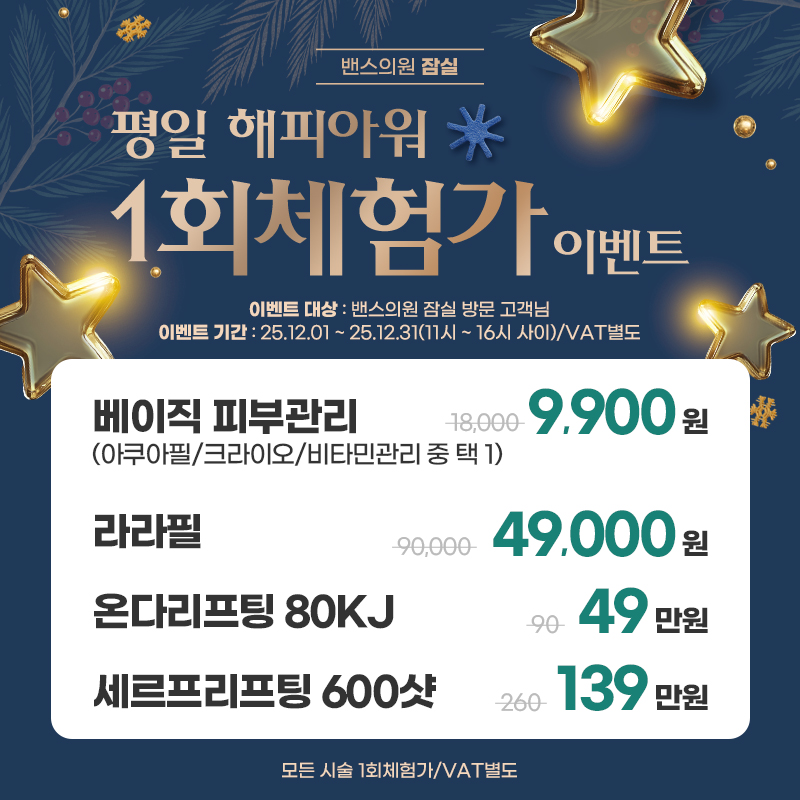 평일 해피아워 1회체험가 이벤트